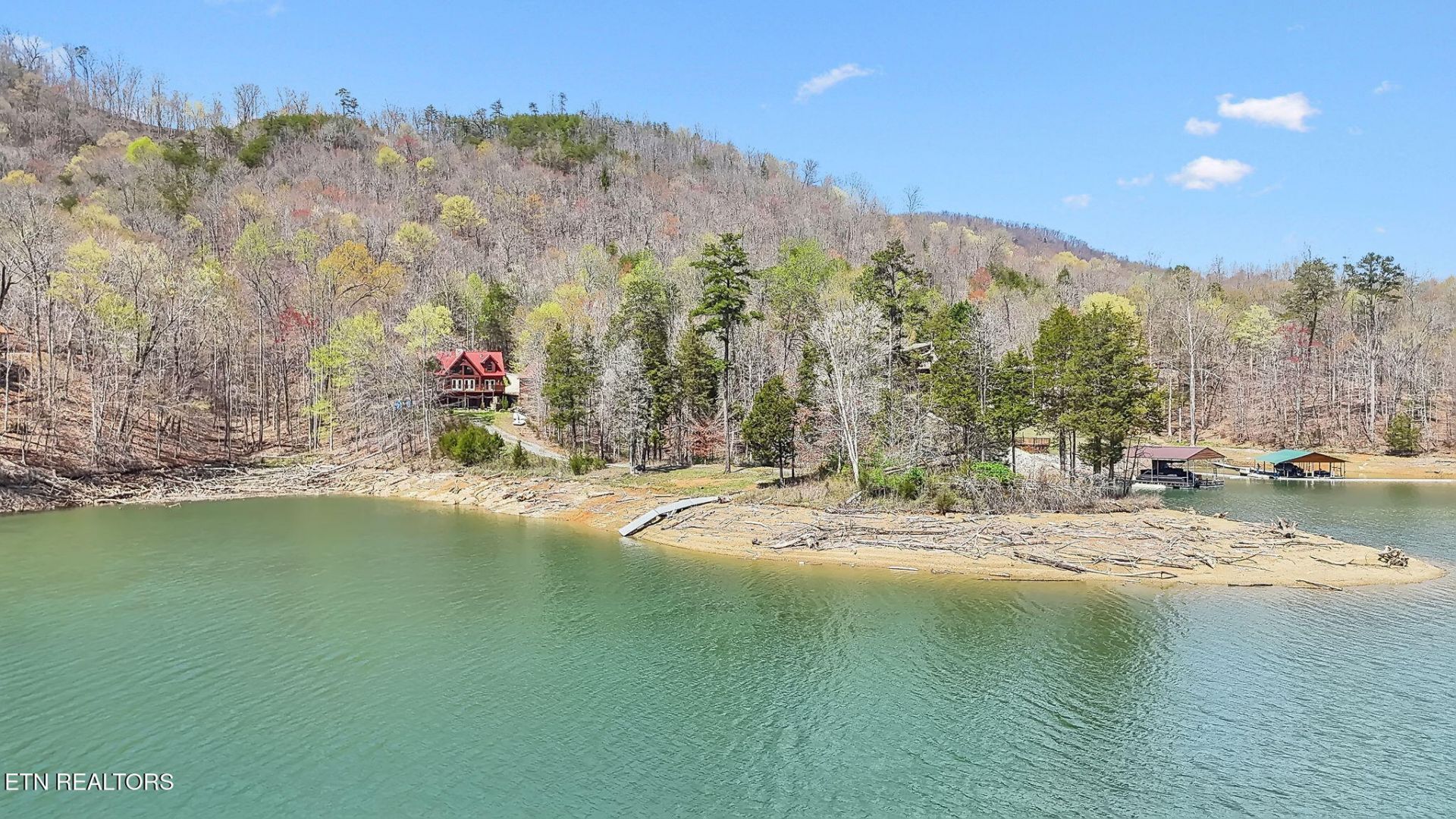 Own your own Peninsula - Norris Lakefront! Discover this beautiful, custom-designed Norris Lake home, offering the perfect blend of luxury, comfort, and serenity. Located on a picturesque peninsula with water running to the tip, this property is ready for you to add your own dock (approval on file) and enjoy easy access to the lake. With 3 spacious bedrooms, 3.5 baths, and an array of high-end features, this home is truly a dream come true.The heart of this home is the gourmet kitchen, complete with a solid wood hood, gas stove, Bosch dishwasher, soft-close cabinetry, and an extensive pantry with electrical hookups for your larger appliances. Whether you're hosting a dinner party or preparing a family meal, this kitchen is designed to impress.The master suite is a true sanctuary, featuring stunning custom Italian tile work from floor to ceiling in the shower, along with a luxurious cast-iron tub. It's the perfect retreat after a long day on the water or continuous relaxation in your Norris Lake Getaway.Entertainment options are endless with a dedicated theater room and a walkout basement that leads directly to your backyard paradise. Outside, you'll find a custom stone fireplace and stone walkway, creating the perfect ambiance for relaxing evenings or social gatherings. Enjoy the sounds of the water flowing from your own well, which is cleverly designed to create a natural creek, and take advantage of the outdoor shower for a refreshing experience.This home is built for convenience and durability, with poured concrete walls, annual HVAC servicing, and a brand new water softener. The cabin-style log siding offers charm without needing the maintenance for a traditional cabin since it is stick built and only a facade. Step out onto the new decking that leads to your private outdoor oasis, perfect for entertaining or relaxing in the peace and quiet of nature. Additionally, there's a detached 2-car garage with a potential apartment, game room, or bar space upstairs--already wired and ready to bring your ideas to life!With water running to the tip of the peninsula and ample space to add your own dock, this property offers unparalleled access to Norris Lake for boating, recreation, fishing, and more.Don't miss your chance to own this one-of-a-kind Norris Lake home. Schedule a tour today and make it yours! Buyer to verify all details.